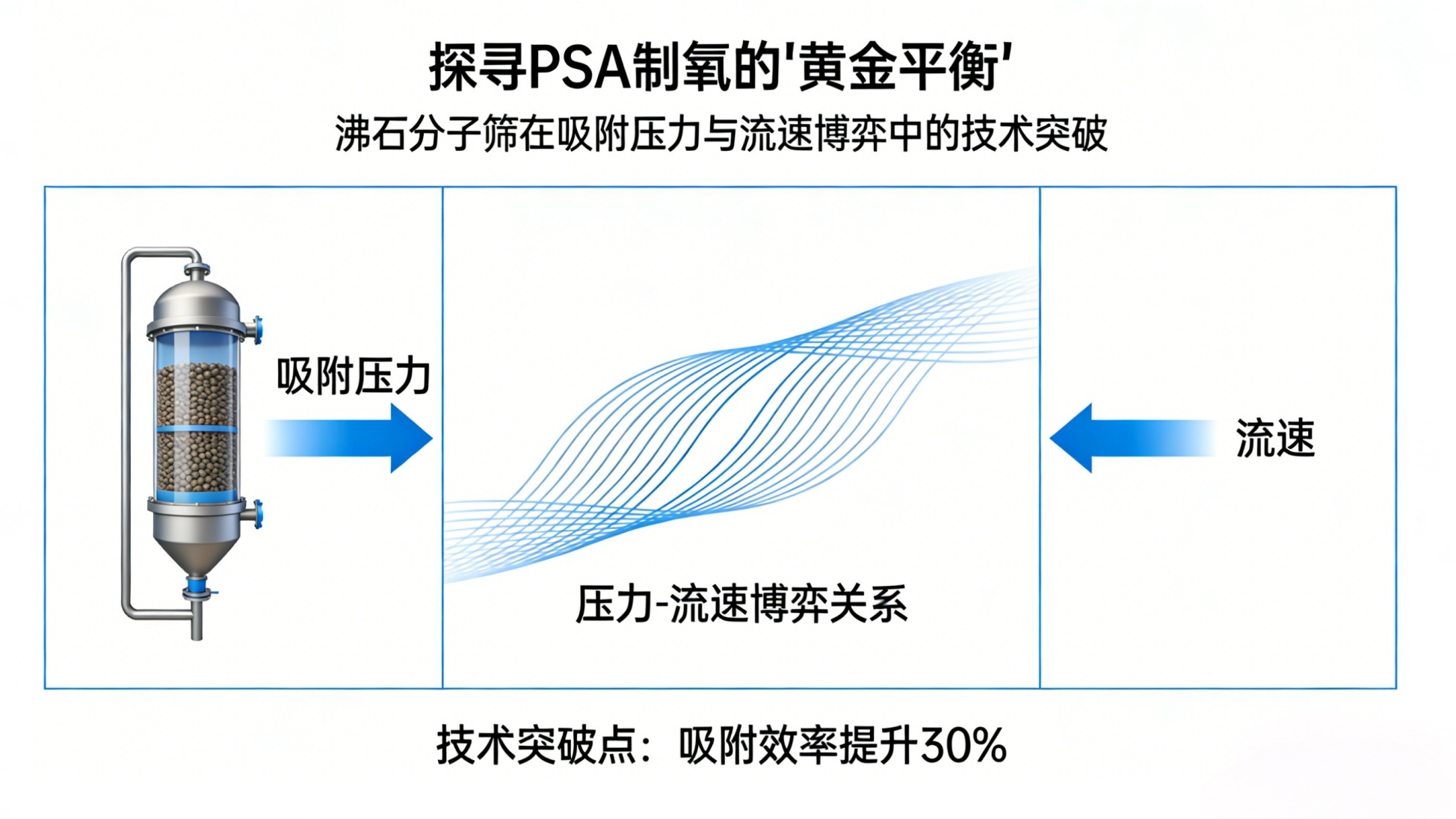 在众多影响分子筛工作效率的变量中,吸附压力与进气/排气流速被公认为最核心的“二元参数”。如何在两者之间找到最佳平衡点,不仅考验着分子筛材料的极限,更决定了制氧设备的经济性与稳定性。本期专题,我们将深入探讨这一技术内核。