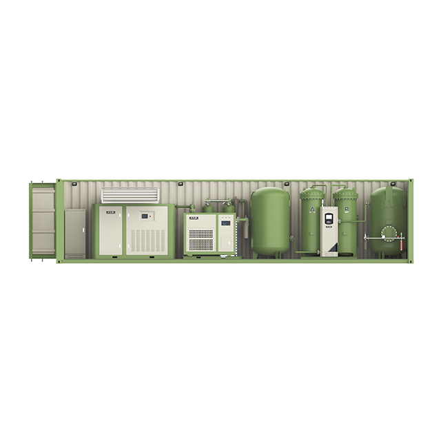 KSTK集装箱式制氮站是一套集成化、模块化的现场制氮系统,专为满足各类工业应用中多样化的氮气需求而设计。系统核心采用高效能PSA变压吸附制氮机,确保持续、稳定地输出高品质氮气。